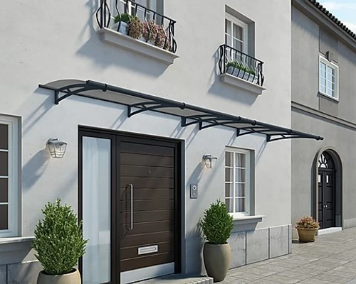 גגון איכותי מסדרת Aquila, עשוי חומרים עמידים בעיצוב מודרני ומינימליסטי. פתרון קירוי אידיאלי לדלתות כניסה, חלונות ומעברים – עמיד בכל מזג אוויר.