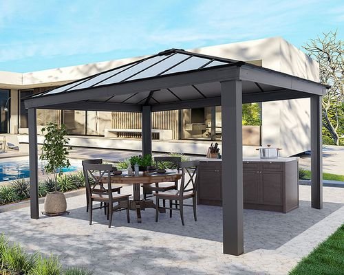 גזיבו אלומיניום לגינה DALLAS אפור 4.3X4.3 מ' – כולל הובלה חינם