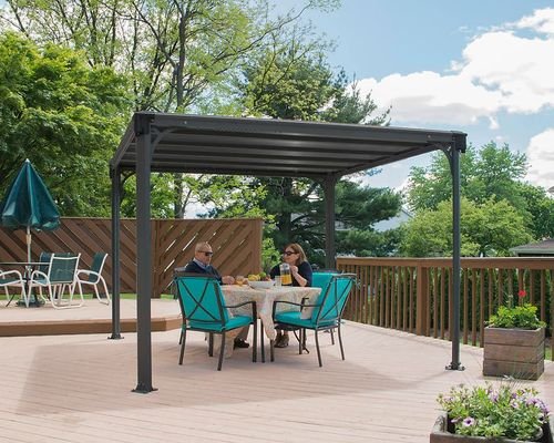 גזיבו MILANO לגינה 3×3 עם גג שטוח אפור כהה