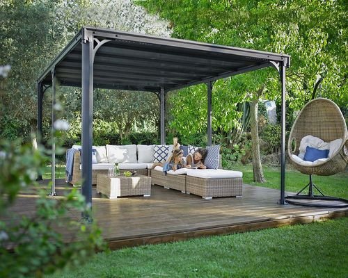 גזיבו MILANO גג שטוח אפור כהה 4.3×3 – הצללה מעוצבת, עמידה ומרשימה