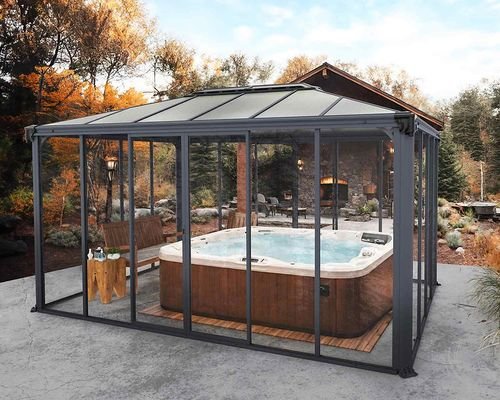 הפתרון המושלם לגינה מוצלת, אטומה ונוחה לשימוש כל השנה. גזיבו LEDRO בגוון אפור כהה מציע עיצוב יוקרתי לצד עמידות מקסימלית, אידיאלי לאירוח, אחסון או מרחב עבודה בגינה.
