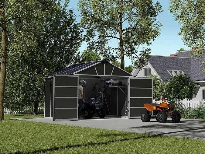 מחסן גינה Yukon אפור כהה דלת רחבה 3.3×2.7 canopia