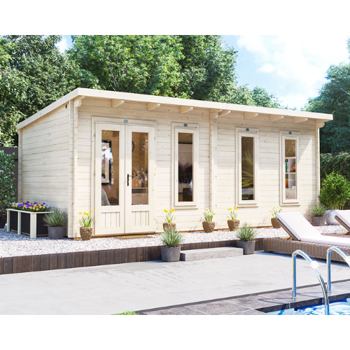 מחסן עץ איכותי עם מראה כפרי יוקרתי – מתאים לאחסון ציוד, כלי עבודה, תחזוקה, סדנה או חדר שירות בגינה. עשוי 100% עץ אשוח עבה במיוחד בעובי 45 מ"מ. כולל רצפת עץ, גגון, שינגלס ירוק וחלונות נפתחים מזכוכית אמיתית עם זיגוג כפול.
