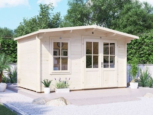 מחסן עץ איכותי ומרווח עם גג דו-שיפועי, עשוי עץ אשוח מלא בעובי 45 מ"מ – לבידוד מעולה ועמידות גבוהה לאורך שנים. פתרון פרימיום לאחסון בגינה, כולל רצפה, גגון, חלון נפתח ודלת כפולה עם נעילה מאובטחת.