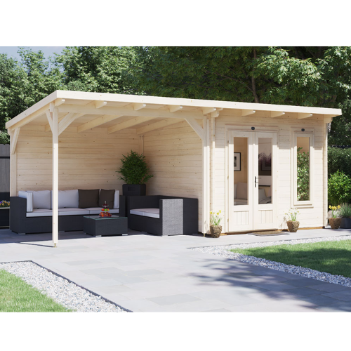 מחסן עץ Cabin עם גזיבו בגודל 6×3 מטר – עובי קירות 45 מ"מ