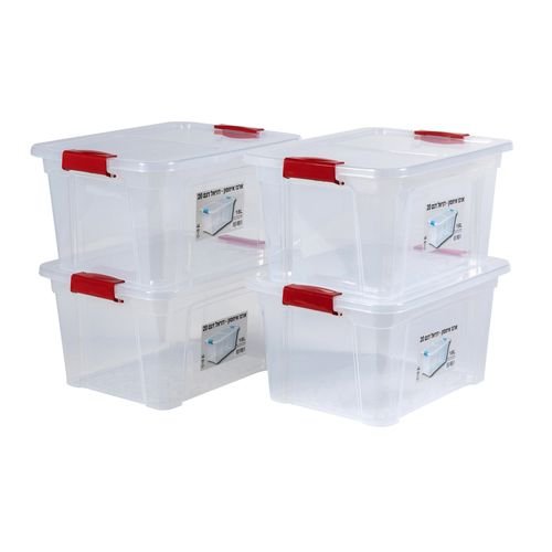 סט איכותי של 4 ארגזי אחסון שקופים בנפח 18 ליטר כל אחד – פתרון אידאלי לאחסון חכם ומסודר בבית, במשרד או במחסן. עשויים פלסטיק חזק ועמיד כולל מכסה תואם. מיוצרים בישראל ומיוצרים מפלסטיק ממוחזר – פתרון שימושי וגם ירוק!
