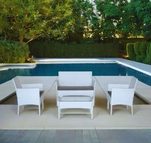 פינת ישיבה לגינה דגם בלאנקו – עיצוב אלגנטי בלבן עם כריות אפורות